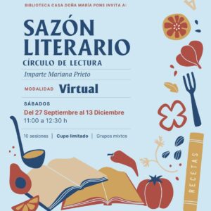 Una comunidad lectora donde exploramos las obras de escritores mexicanos, compartimos ideas y descubrimos nuevas miradas, mientras disfrutamos de platillos que interpretan y dan sabor a las historias. Guiado por Mariana Prieto, mediadora de lectura. Periodicidad: Una sesión semanal todos los sábados de 11:00 a 12:30 h, siendo un total de 10 sesiones, concluimos el…