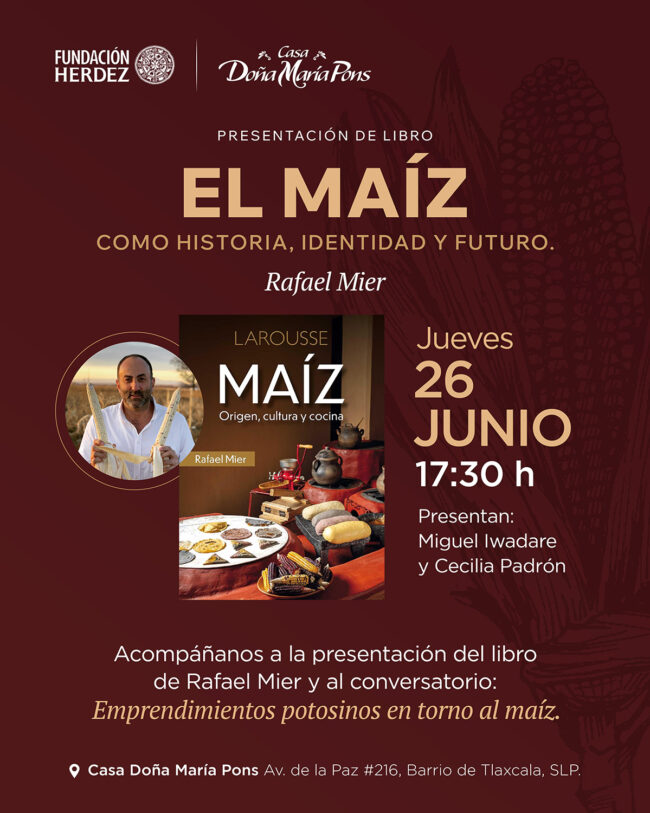El libro Maíz. Origen, cultura y cocina de la autoría de Rafael Mier, director de Fundación de Tortilla de Maíz Mexicana, AC, fue presentado este jueves en las instalaciones de Casa Doña María Pons, ubicada en Avenida de la Paz 216, en el barrio de Santiago de la capital potosina. La obra, que que celebra al grano…