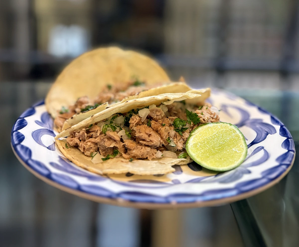 Servir un poco de la mezcla en tortilla caliente acompañado de cilantro, cebolla, limón y salsa Herdez al gusto