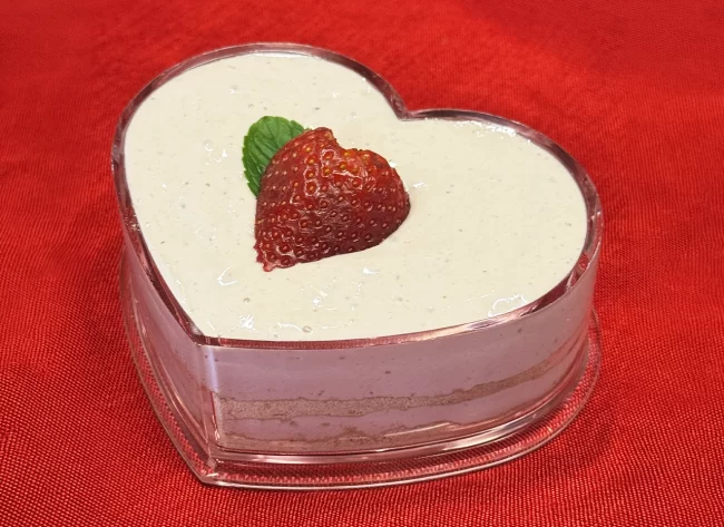 Cremosa carlota de frutos rojos con capas de galleta de vainilla y un suave relleno con queso crema y mermelada. Un postre fresco, dulce y ligeramente ácido, ideal para celebrar el Día del Amor y la Amistad con un toque especial.