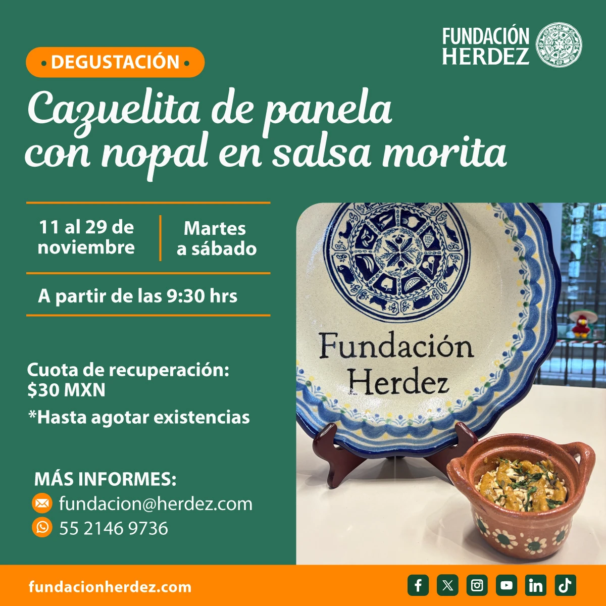 Ven por tu deliciosa degustación de Cazuelita de nopales y queso panela al chile morita