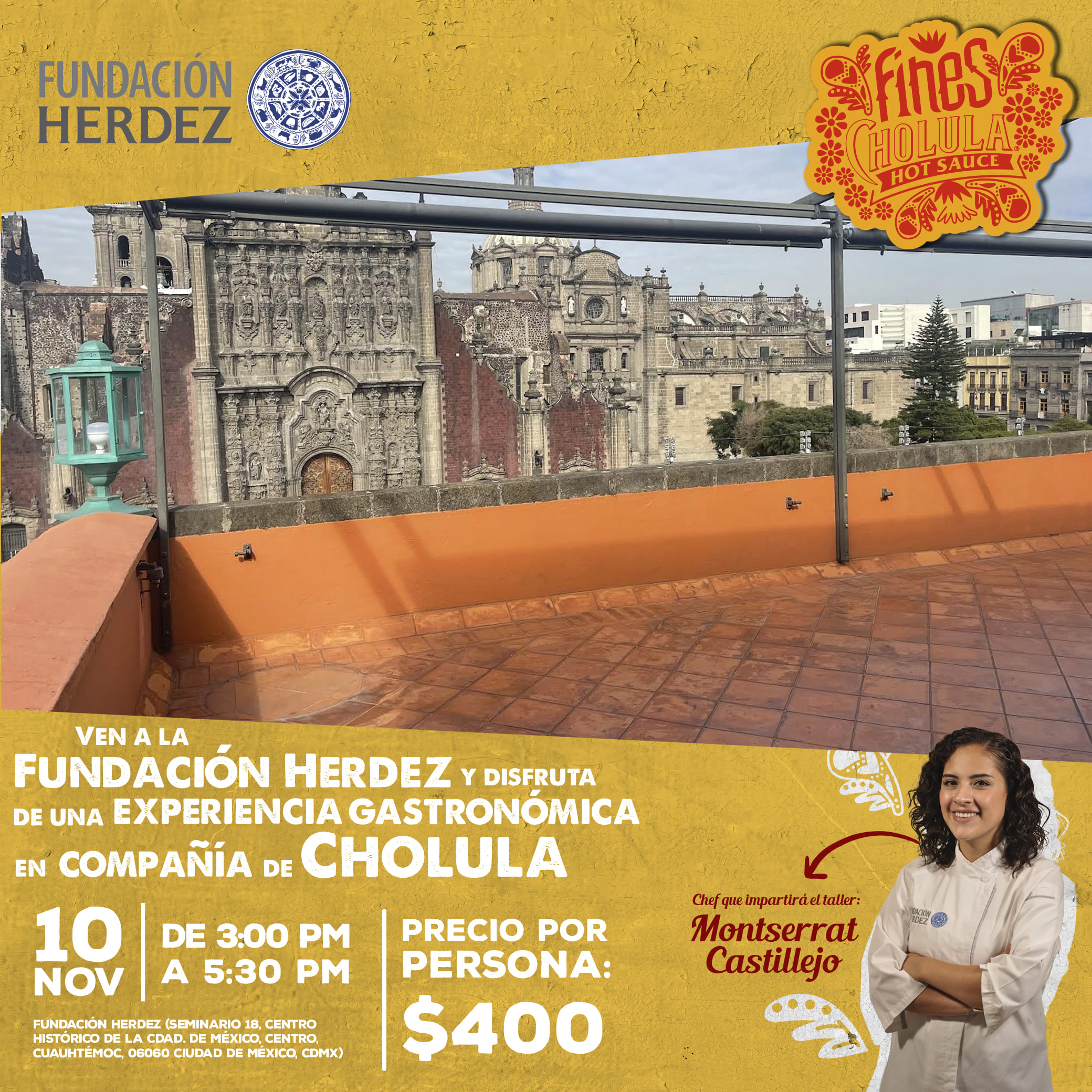 Experiencia Gastronómica con Cholula Inscripciones: fundacion@herdez.com 00 días 00 horas 00 minutos 00 segundos Fecha Abr 04 2026 Hora 15:00 - 17:00 Coste MXN400.00 Localización Noticias Otros lugares Categoría DEGUSTACIÓN Organizador Infografías Otros organizadores Compartir este evento